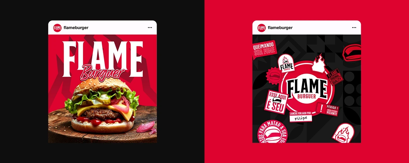 A paleta combina tons intensos de vermelho, preto e cinza, evocando carne suculenta, brasa viva e atitude.Cada detalhe da comunicação foi pensado para provocar, entreter e afirmar posição — desde as embalagens com frases ácidas até os brindes com piadas internas que só os verdadeiros flame lovers entendem.