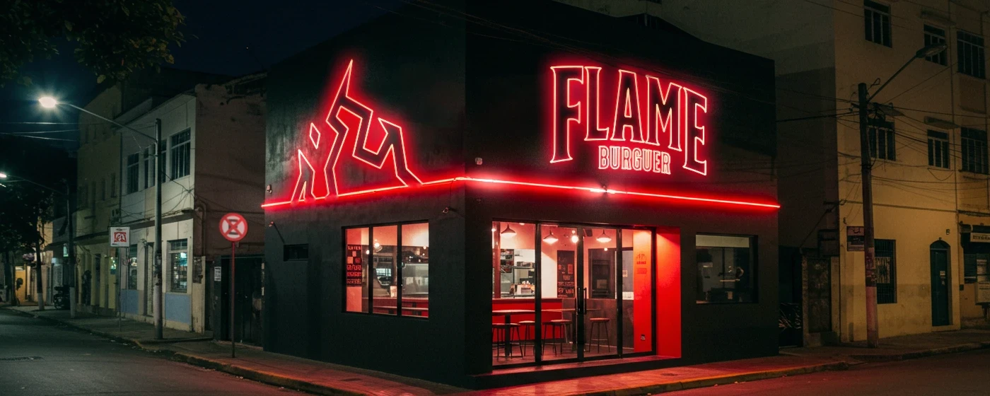 🔥 O verdadeiro sabor da rebeldia! Criada do zero para ser disruptiva, a marca nasceu do desejo de provocar o paladar e desafiar o segmento, com lanches únicos, molhos viciantes e uma identidade visual que não passa despercebida. Do nome ao slogan: “queimando a sua fome”, tudo foi pensado para romper padrões e criar uma marca que não tenta agradar todo mundo, mas atrair amantes ousados da gastronomia de verdade!