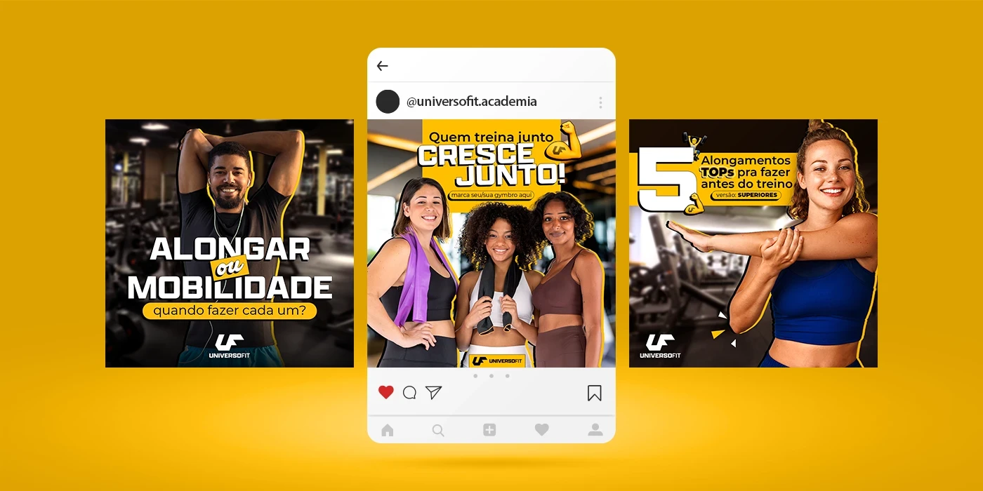 UniversoFit é uma academia que já nasceu com um propósito grande: potencializar a capacidade dos seus alunos de superar os seus limites. Mas esse propósito não estava claro com sua antiga comunicação visual e posicionamento, se fazendo necessário um rebranding.